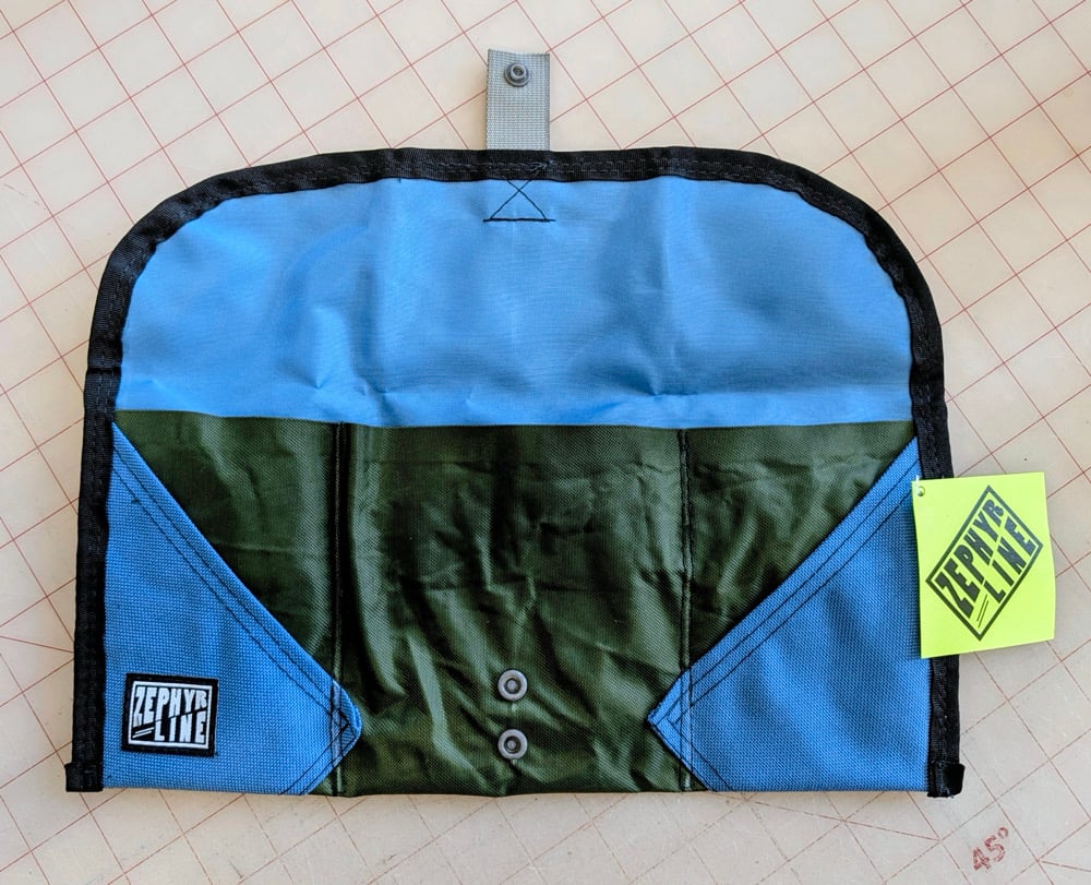 The roll snaps shut and folds up for easy transport with generous pockets for tools or personal items.